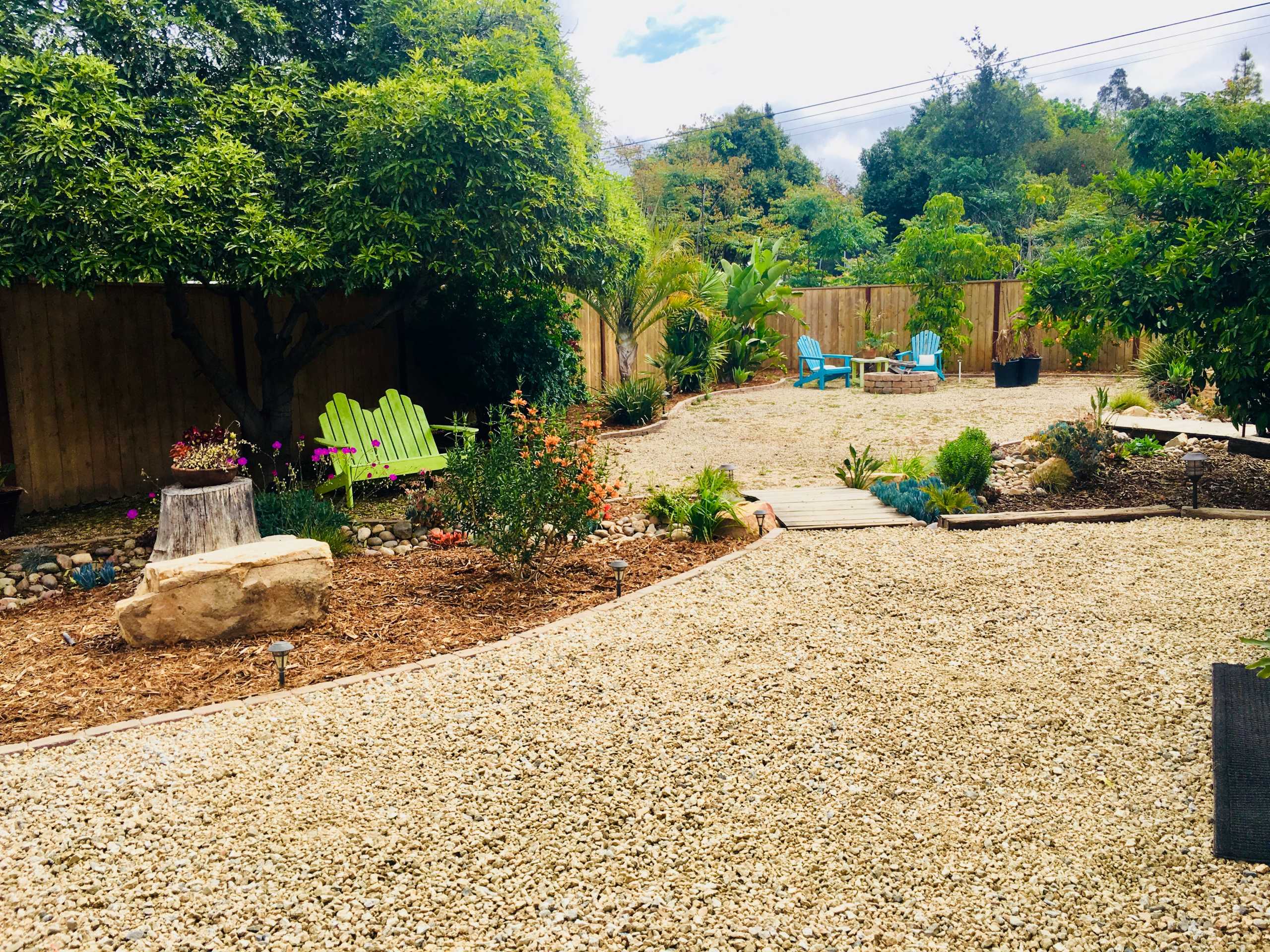 Private & fully manicured 1/2 acre of yard includes multiple entertainment & relaxation zones alongside lush water-wise landscaping featuring a high-yield avocado tree. Loads of established citrus trees include oranges, lemons, grapefruit & tangerine. Maturing fruit trees include peach, apricot, plum, nectarine & pear. Fully-fenced & private backyard features a large, custom built-in chicken coop.